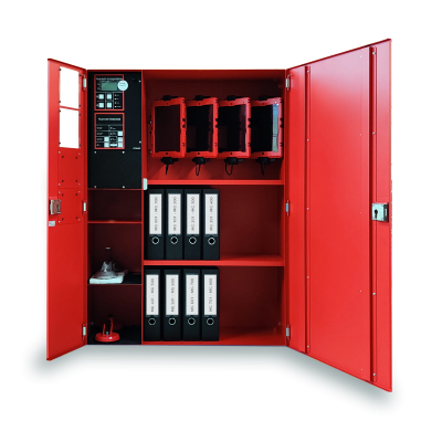 Feuerwehr-Informationszentrale (FIZ) in Sonderversion. Unsere Sonderbau-Abteilung war wieder fleißig. Planung und Fertigung einer individuellen FIZ zur Integration von FAT, FBF, FGB, Laufkarten, Feuerwehrplänen, Doppelbodenheber und APLIS-Tablets zur Visualisierung von Brandschutzgrafiken.