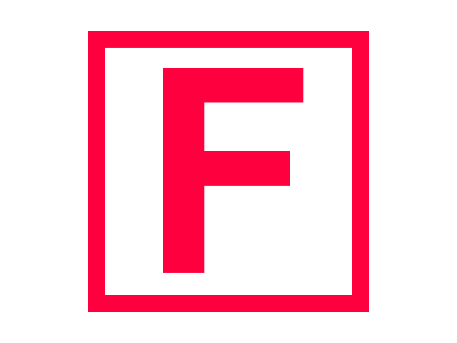 Aufkleber aus PVC mit rotem "F" und rotem Rand.
