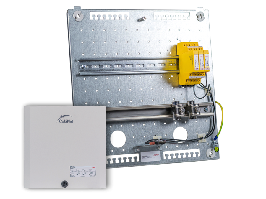 Überspannungsschutz-Set für die Verwendung einer Schlüsseldepot-Hohlsäule. Anschlussfertige Systemlösung zum optimalen Schutz aller elektrischen und elektronischen Systeme sowie Geräte innerhalb eines Gebäudes vor Überspannungen. Die integrierten Blitz- und Überspannungs-Ableiter stellen den Blitzschutz-Potentialausgleich am Zonenübergang 0 auf 1 sicher.