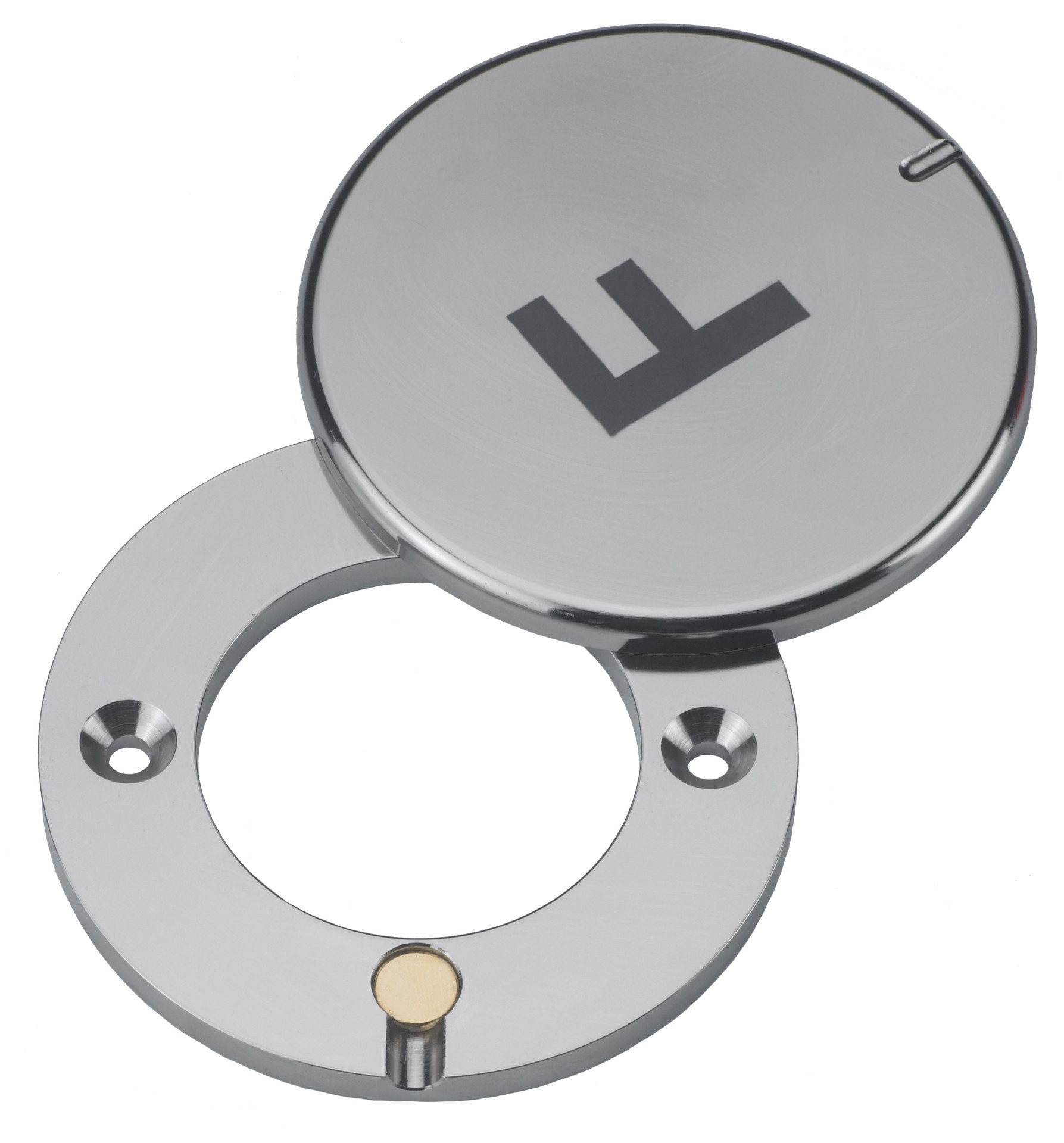 Vandalismusrosette mit Kennzeichnung "F" für Freischaltelement FSE-AY/M. Hierdurch wird eine Manipulation des Schließzylinders verhindert. Der Vandalismusschutz kann nur mit einem Spezialschlüssel geöffnet werden (FSE-VR-MSL/M bei Bedarf mitbestellen). Lieferung inkl. Befestigungsmaterial.