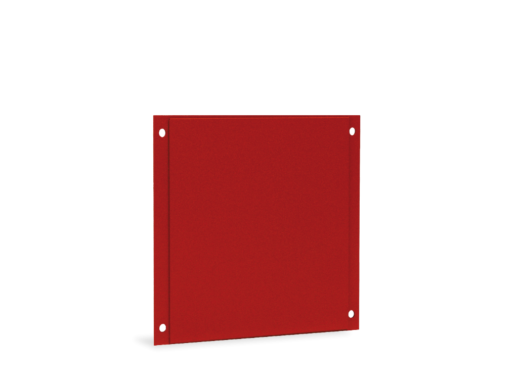 aus Stahlblech, pulverbeschichtet feuerrot (RAL 3000), zur flächenbündigen Abdeckung eines Türausschnitts in der Außentür des FIP oder FIZ.