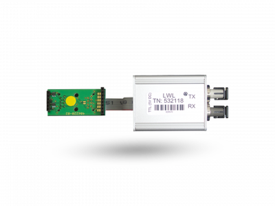 Aufsteckmodul zur Realisierung einer LWL-Schnittstelle. Gehäuse aus Aluminium. Anschluss der LWL über ST-Steckverbinder.