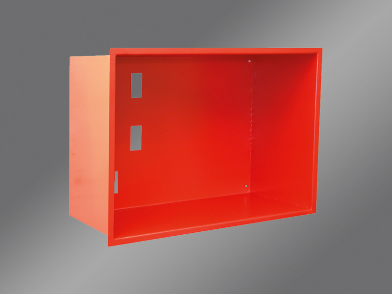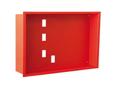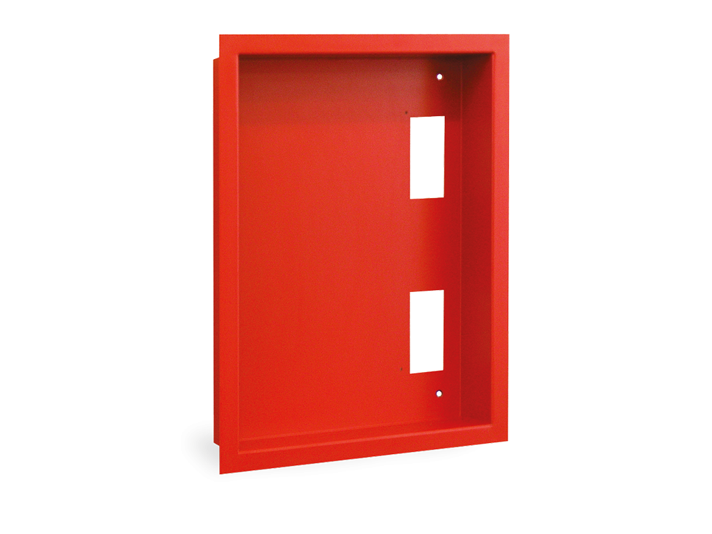 aus Stahlblech, pulverbeschichtet feuerrot (RAL 3000), optional in jeder anderen RAL-Farbe lieferbar. Zur Montage eines FIP unter Putz.