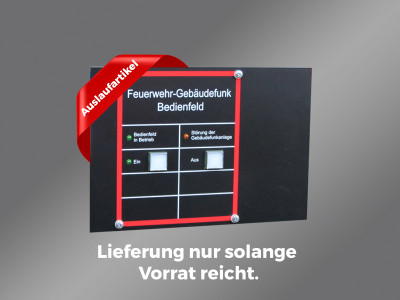 nach DIN 14663, zur einheitlichen Bedienung einer Objektfunkanlage, zum Einbau in ein Gehäuse. Durch zwei Tasten kann die BOS-Objektfunkanlage ein- bzw. ausgeschaltet werden. Durch Leuchtdioden wird der Betriebszustand der Anlage angezeigt.