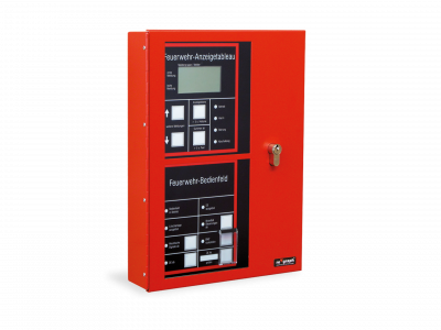 Kombination aus Feuerwehr-Anzeigetableau (FAT) nach DIN 14662 und Feuerwehr-Bedienfeld (FBF) nach DIN 14661 zum Einbau in ein Gehäuse. Die FAT/FBF-Kombination in Ausführung mit schwenkbarer Folientastatur wird in den redundanten APLIMO-oder VAREXplus-Ring integriert (wahlweise auch Direktanschaltung an BMZ sowie weitere Ringteilnehmer optional möglich). Durch die automatische Übernahme von Meldergruppe, Meldernummer und Zusatztext direkt aus der BMZ, entfällt die Programmierung des FAT (plug&play). Die Meldungsanzeige erfolgt auf einem LCD-Grafikdisplay (6x20 Zeichen). Vollständige Darstellung des Zusatztextes durch 3. Zeile je Meldung. Werkseitige Einbindung eines Firmen-Logos möglich.