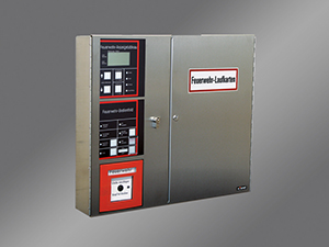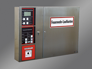 Feuerwehr-Anzeigetableau (FAT) nach DIN 14662, Feuerwehr-Bedienfeld (FBF) nach DIN 14661 und Druckknopfmelder nach DIN EN 54-11.