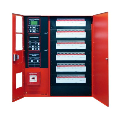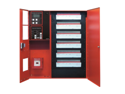 Feuerwehr-Anzeigetableau (FAT) nach DIN 14662, Feuerwehr-Bedienfeld (FBF) nach DIN 14661, Feuerwehr-Gebäudefunkbedienfeld (FGB) nach DIN 14663 und Druckknopfmelder nach DIN EN 54-11.