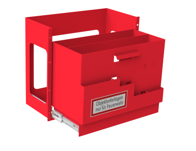 Feuerwehr-Anzeigetableau (FAT) nach DIN 14662, Feuerwehr-Bedienfeld (FBF) nach DIN 14661, Feuerwehr-Gebäudefunkbedienfeld (FGB) nach DIN 14663. Inkl. Sichtscheibe und Kastenschloss zur Aufnahme eines Feuerwehr-Profilhalbzylinders. Inkl. Einbau in ein Gehäuse.