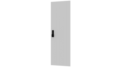 Tür aus V2A-Edelstahl, geschliffen, Links-Anschlag. Ausgestattet mit einem Schwenkhebelverschluss zur Aufnahme von 2 bauseitigen Profilhalbzylindern. Geschlossene Ausführung ohne Sichtscheibe.