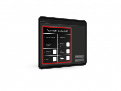 Bedienfeld (10,1"-Display mit Touchfunktion) für erweiterte Druckfunktionen (z.B. Nachdruck von Feuerwehr-Laufkarten), zum Einbau in ein Gehäuse.