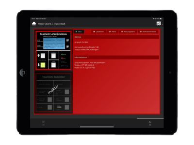 Mehrere Etagentableaus können auch zusammengefasst auf einem Monitor (wahlweise im Splitscreen) dargestellt werden. Es wird dabei immer das Tableau in der Ansicht priorisiert, welches sich im Alarmzustand befindet. Mittels Navigationsleiste können darüberhinaus auch weitere Etagen aufgerufen werden. Dies ermöglicht eine optimale Darstellung von Gebäuden mit vielen Etagen auf einem Monitor. Die Auflösung (Full HD oder UHD), die Ausrichtung (hoch oder quer) sowie die Position der Navigation (rechts oder unten) kann individuell konfiguriert werden. Legenden für Gebäude, Etagen und Melderart können automatisiert erstellt werden, sofern die entsprechenden Informationen in der Meldergruppenauflistung enthalten sind. Inkl. Demo-Modus zur Überprüfung des Verhaltens der einzelnen Elemente im Meldungsfall. Voraussetzungen für die Grundversorgung des Systems: - Meldergruppenauflistung - Gebäudegrundrisse bzw. Übersichtsplan als Grafik im Format PNG, JPG oder SVG Hinweis: Layouterstellung und Konfiguration des Tableaus sind in dieser Position nicht enthalten! |