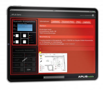 Angereichert mit den wichtigen Brandschutzgrafiken und Maßnahmentexten informiert APLIS den Betreiber, den Errichter und die Feuerwehr in Echtzeit detailliert über anstehende Ereignisse des Brandmeldesystems.