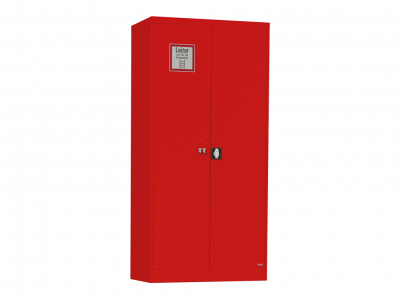 Standschrank aus Stahlblech, pulverbeschichtet in feuerrot (RAL 3000) oder signalweiß (RAL 9003)