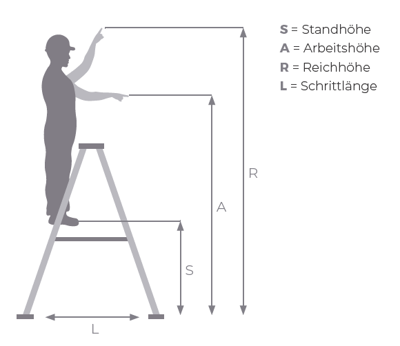 Reichhöhe (Stehleiter): 3,55 m